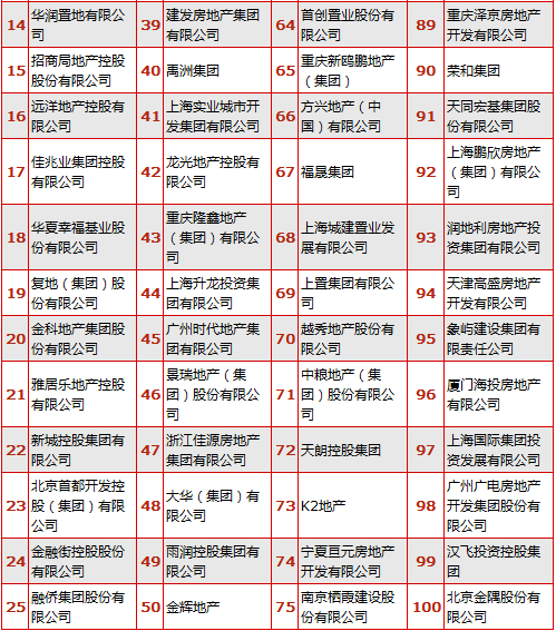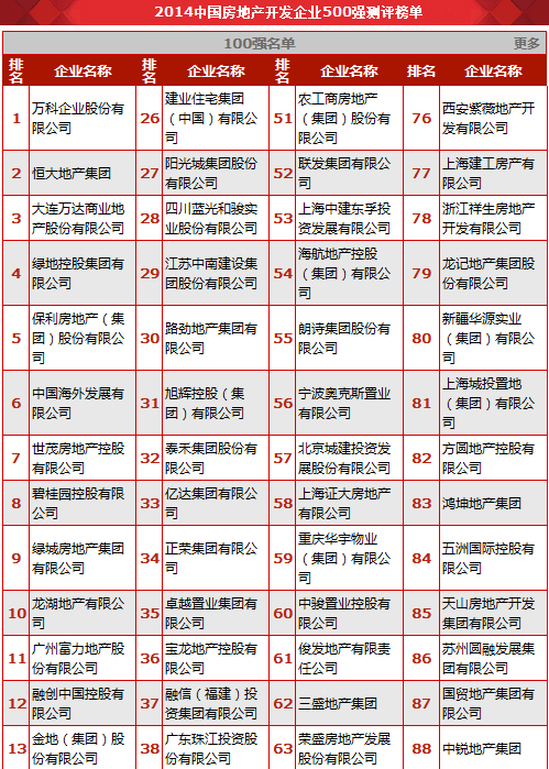收藏 2014中国房企500强揭晓 17家闽系房企入围百强